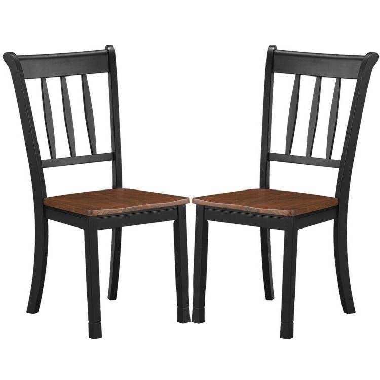 Set of 2 Solid Wood Black Mission Style Armless Dining Chairs with Brown Seat