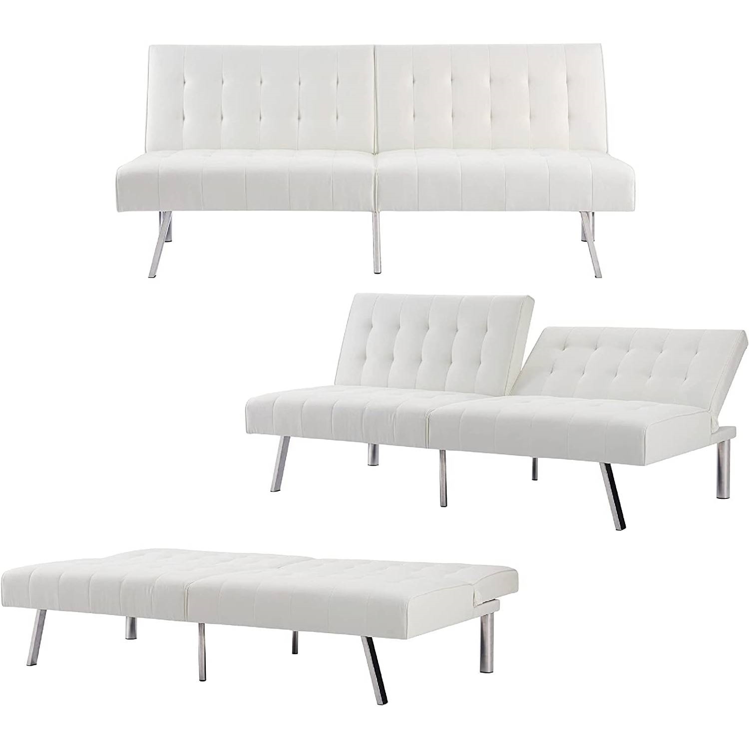 Mid-Century Modern Split Back Futon Sleep Sofa Bed in White Faux Leather Mid-Century Modern Split Back Futon Sleep Sofa Bed in White Faux Leather Mid-Century Modern Split Back Futon Sleep Sofa Bed in White Faux Leather Mid-Century Modern Split Back Futon Sleep Sofa Bed in White Faux Leather