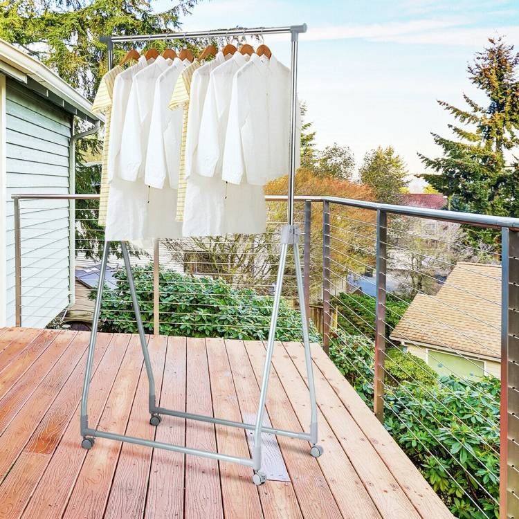 Home > Folding Extendable Metal Garment Rack Clothes Hanging Rod with Lockable Wheels